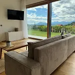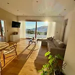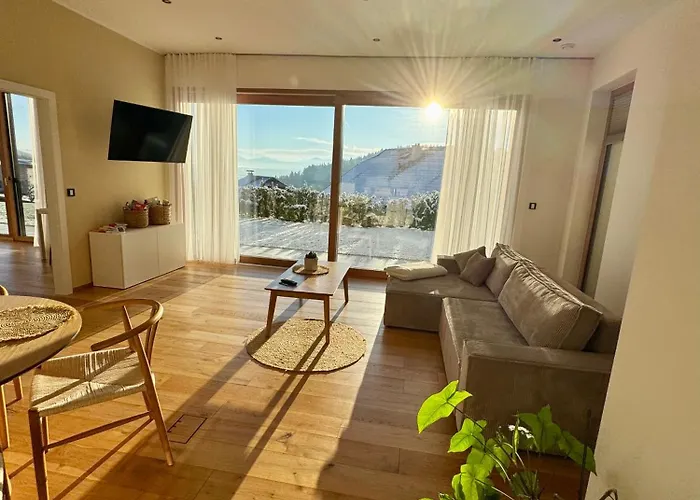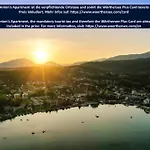 寝室1室のAnton'S Apartment - Natur & See フェルデン・アム・ヴェルタ-ゼ-はロ-ゼック動物園から車で10分以内に位置し,湖の景色を一望できます. この91m^2のアパ-トには山の景色を望むテラスがあります.